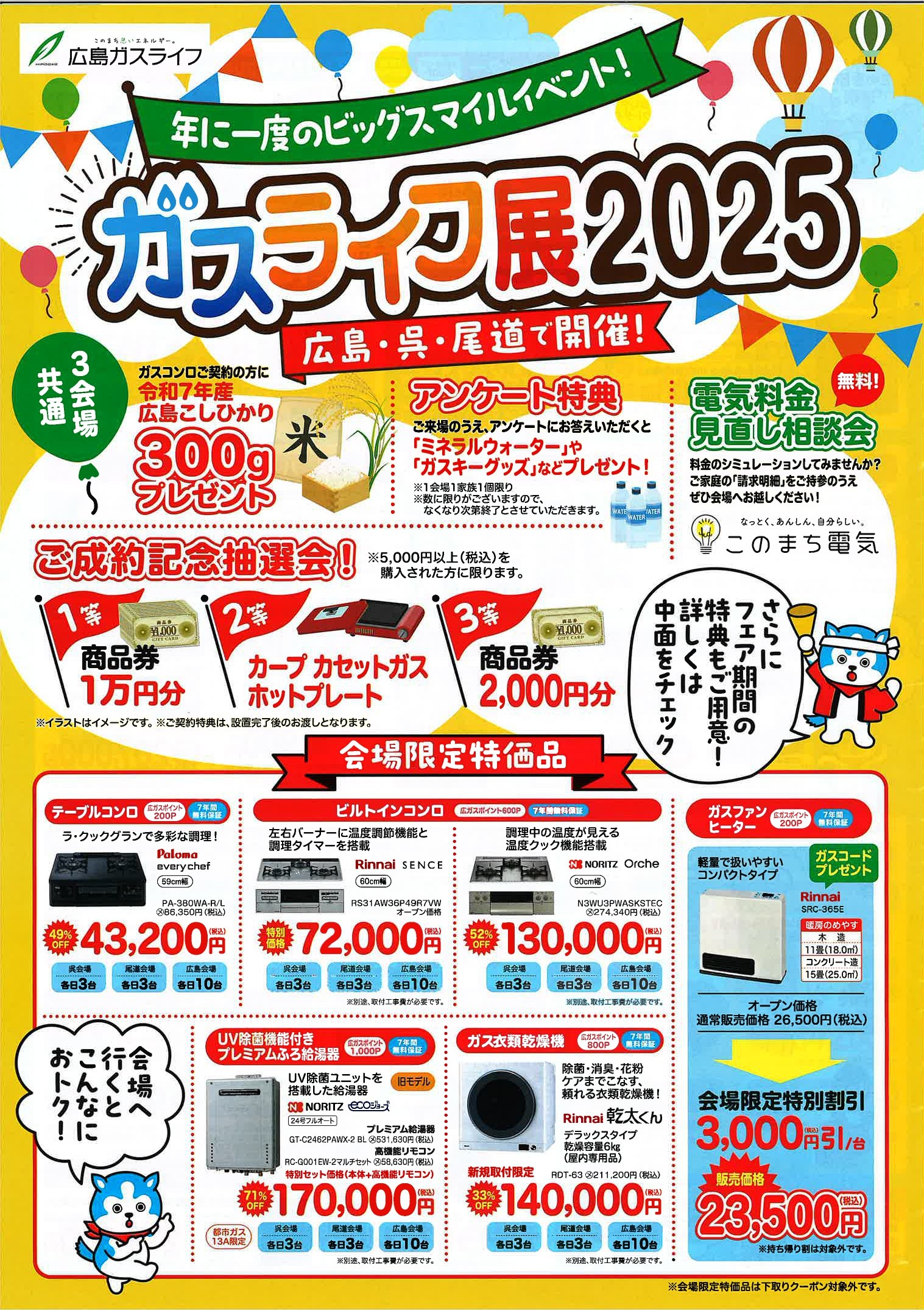この度は毎年恒例の広島ガスのイベントのご案内をさせていただきます。