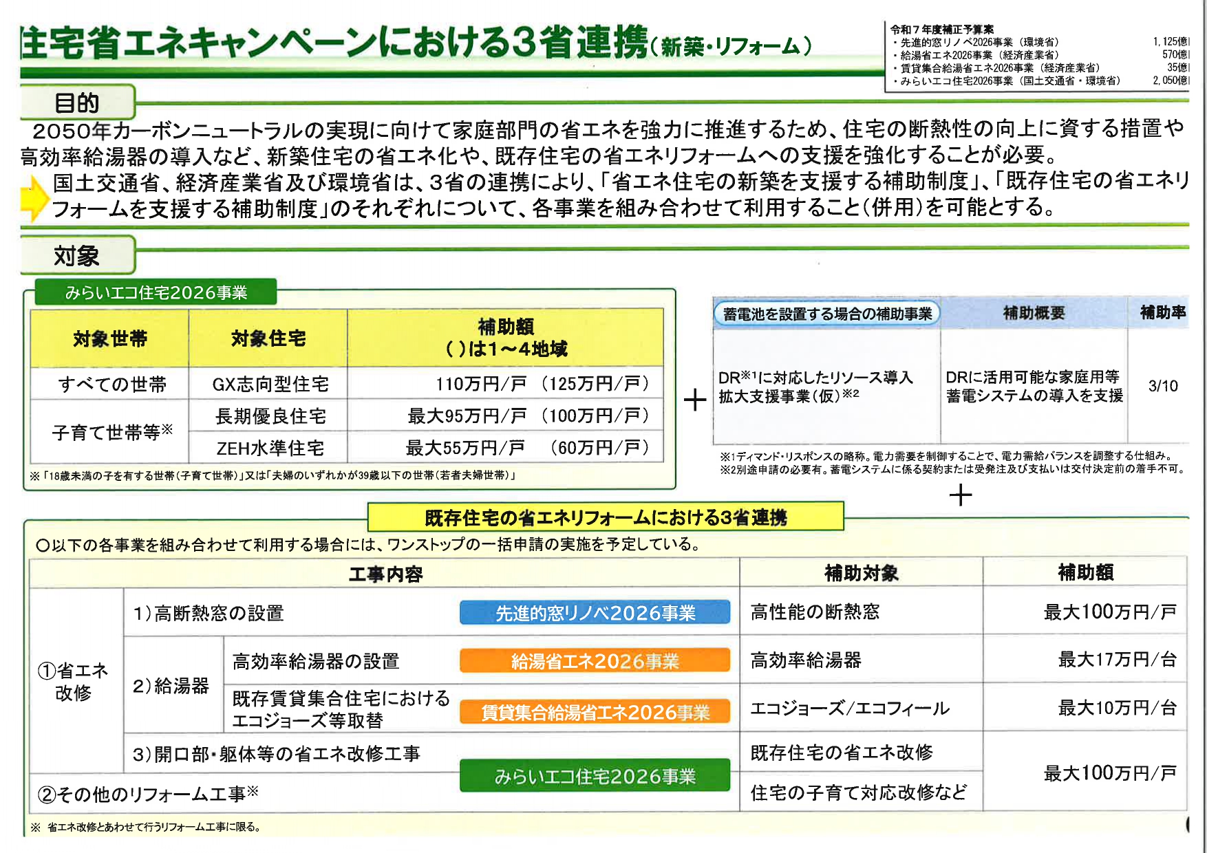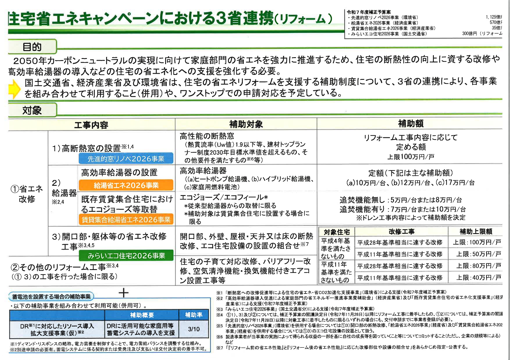 3年間続きました、住宅省エネ2025及び先進的窓リノベ2025、給湯省エネも