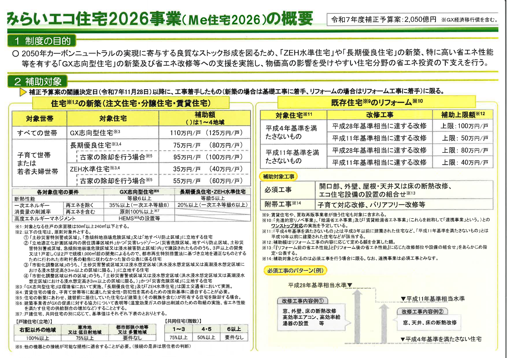 大きな変更点としまして、子育てグリーン住宅から未来エコ住宅へと名称の変更がございました。